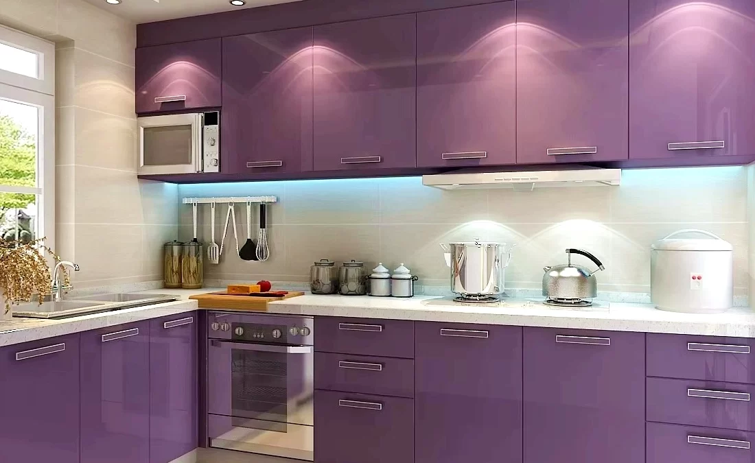 High Gloss Purple Surface Finish: The glossy coating enhances color depth and surface smoothness, delivering a modern and distinctive cabinet appearance.